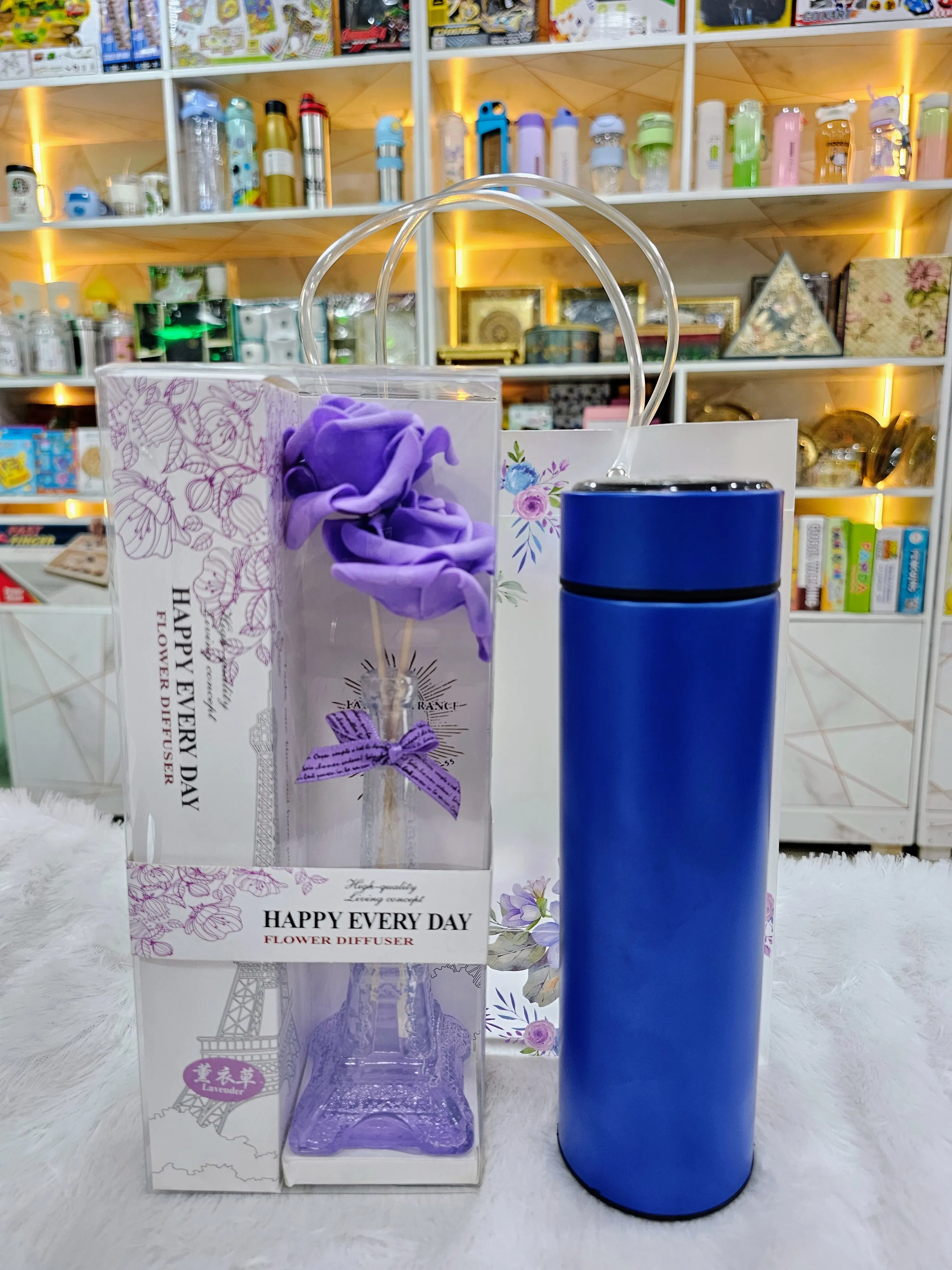 A refined and versatile corporate gifting set that suits all occasions. This combo includes a stylish insulated flask paired with a fragrance flower diffuser, offering both practical utility and a touch of elegance for any workspace or home.