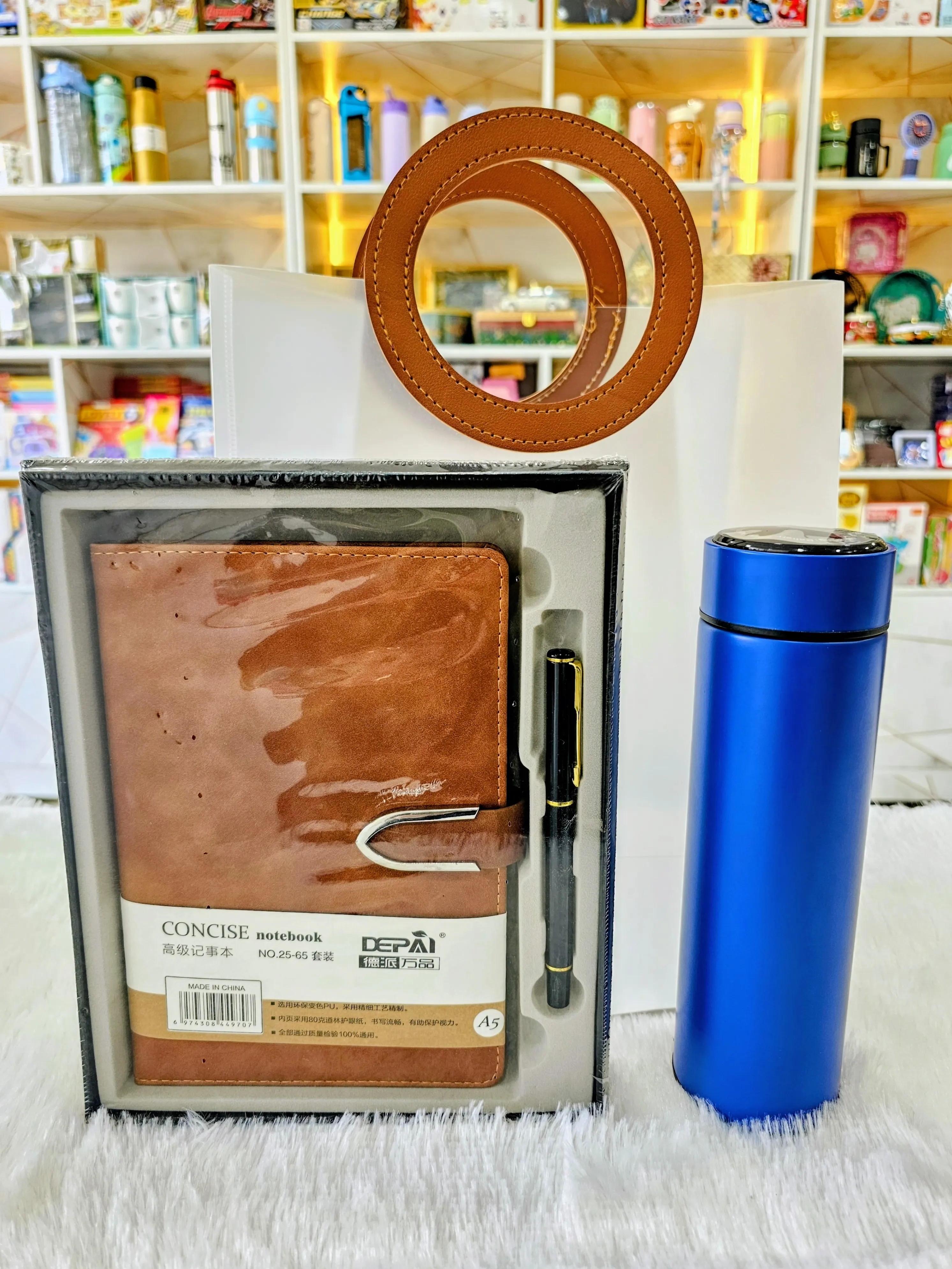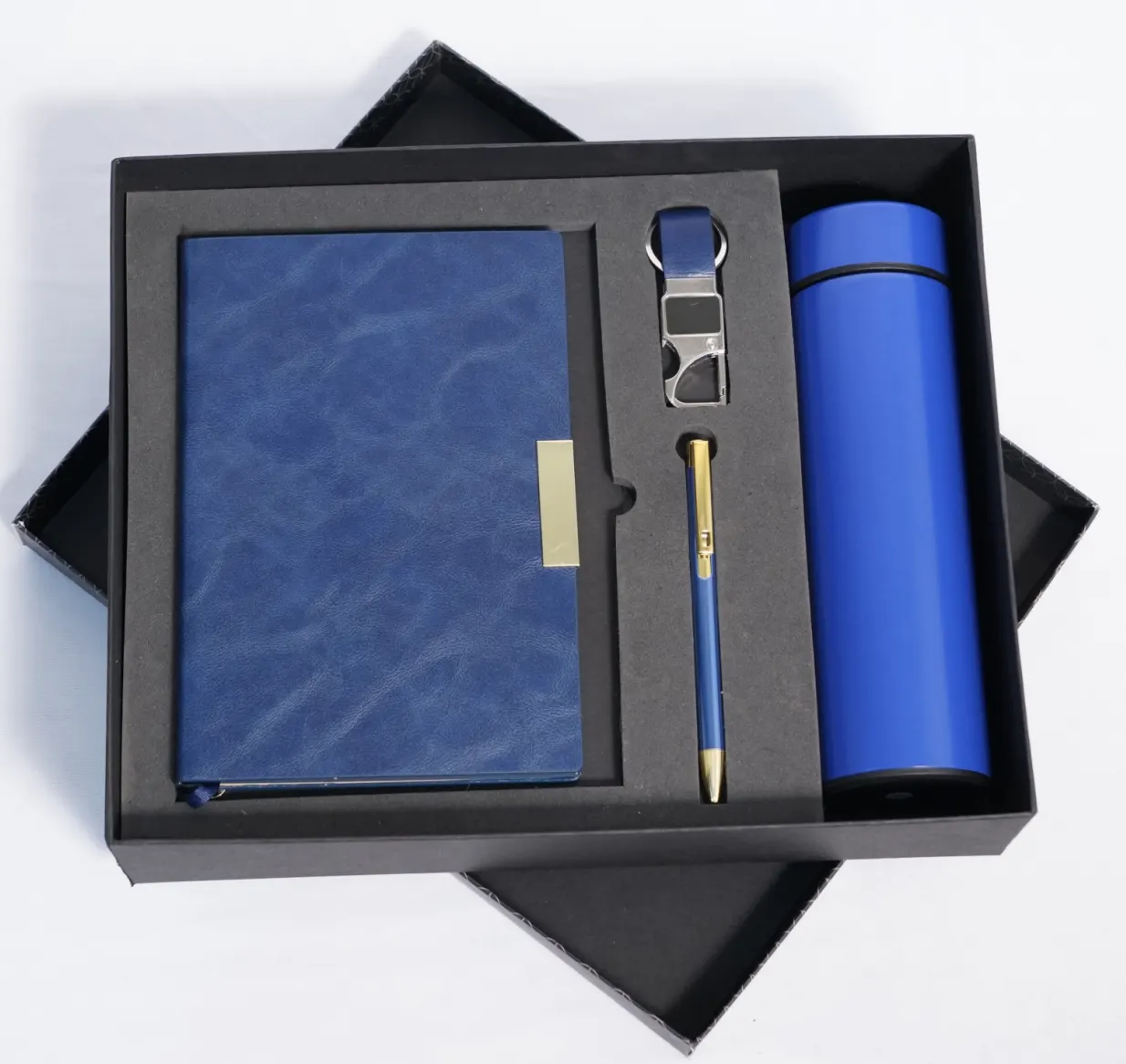 Elevate your gifting with this elegant corporate combo featuring a premium leather-textured notebook, sleek metal pen, durable temperature bottle, and stylish keychain. Perfect for employee onboarding, client appreciation, festive gifting, and brand promotions. A classy, useful, and memorable gift that reflects professionalism and style.