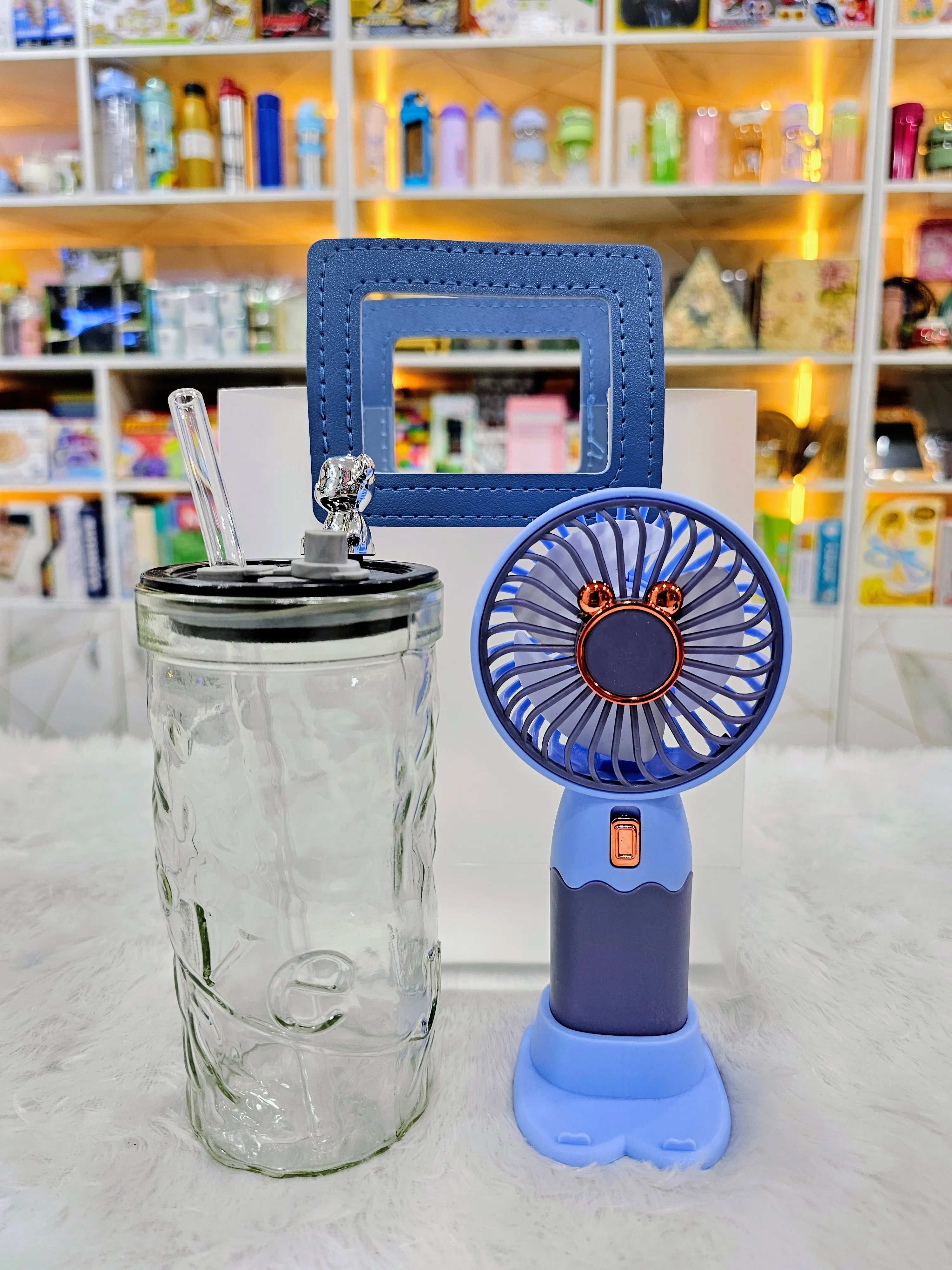 Utility Gift Combo – Glass Sipper Mug & Portable Desk Fan