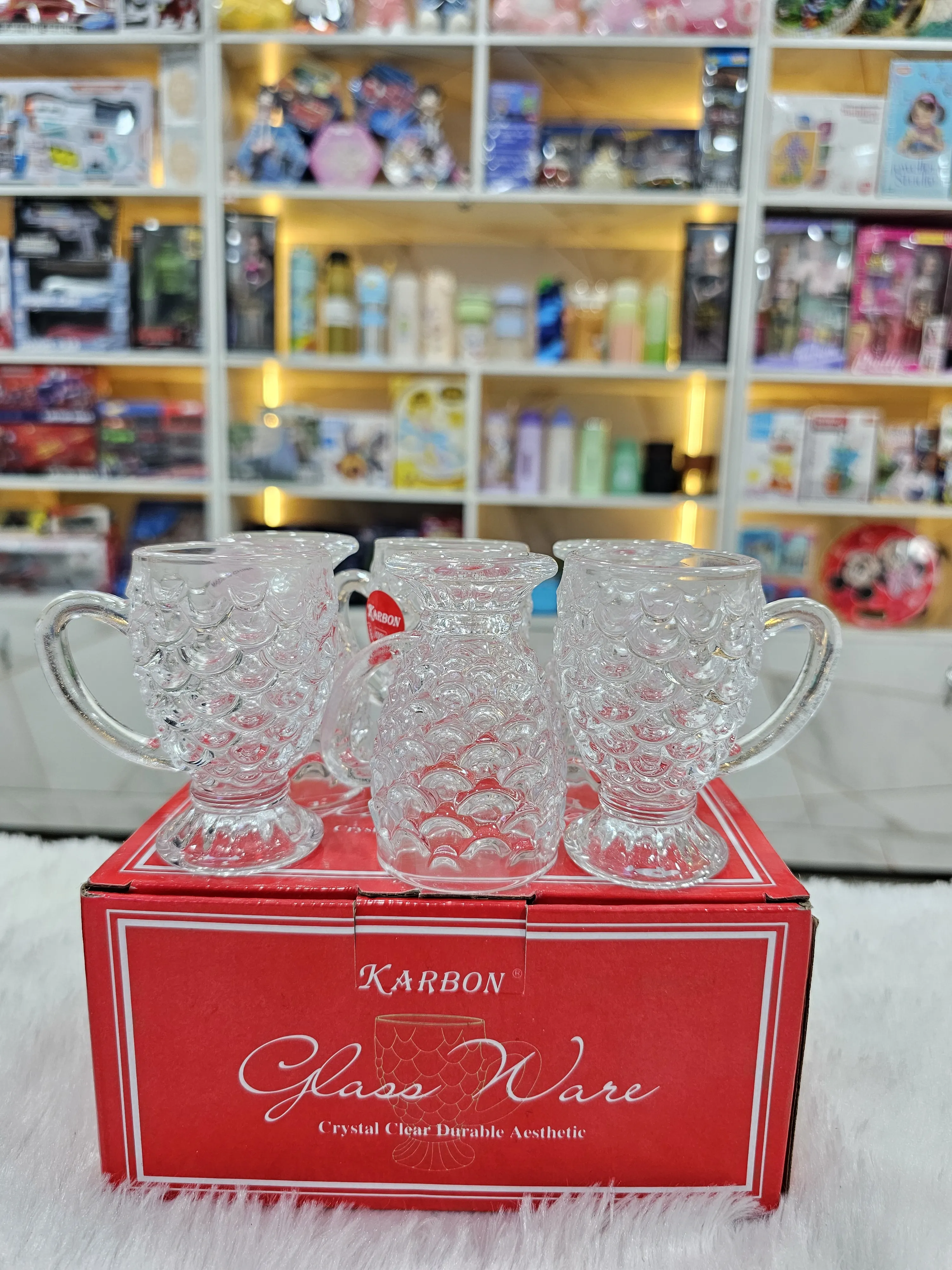 A beautifully crafted 6-piece fish-shaped glass set made from premium crystal-clear glass. The unique textured scales and elegant shine make it perfect for serving juices, welcome drinks, or using as a decorative table piece. Durable, stylish, and ideal for gifting during festivals, weddings, housewarmings, and return gifts. Comes neatly boxed and ready to present.