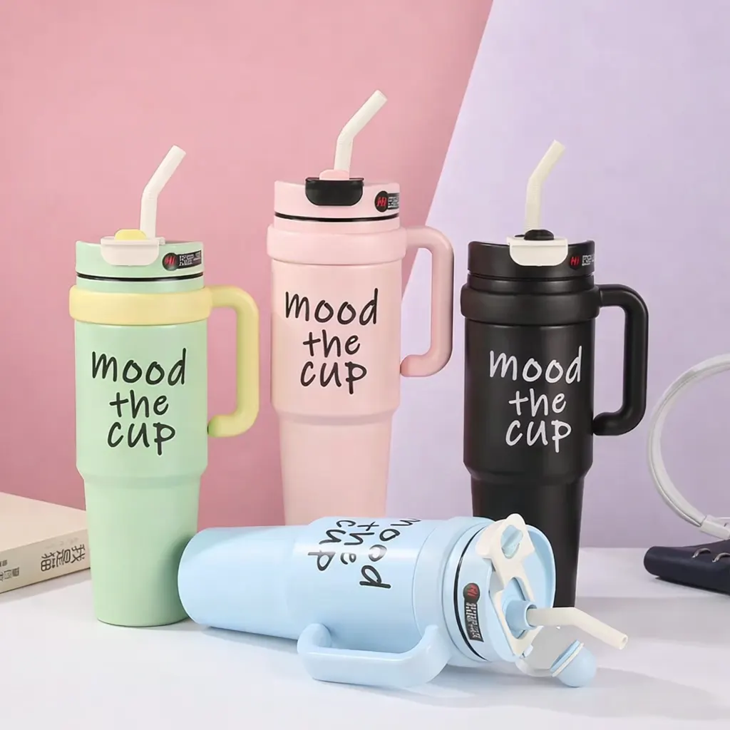 Mood The Cup Insulated Water Bottle, 900 ml, Stainless Steel Tumbler with Handle and Lid 2 Straw, Double Insulated Cup 100% Leak Proof for Office & Gym